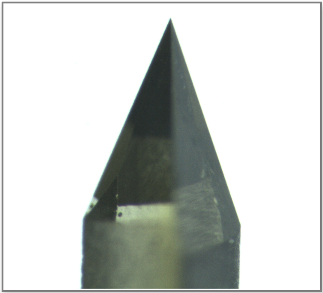Geomill326 comes with a tungsten carbide drill bit as standard equipment. This bit will be sufficient for many applications, but is not intended for jobs requiring micrometer precision, or for extremely hard materials. This single-crystal diamond bit has an extremely sharp but durable tip that is best suited for such jobs. However, note that it has low durability against horizontal drilling.