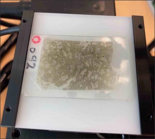 For some materials (for example, the growth lines of shells and fish otoliths, stalagmite laminae, and mineral particles), clear observation requires the illuminating power of transmitted illumination. Should your work involve such applications, the Geomill326 stage can be fitted with a compact LED transmitted light source.